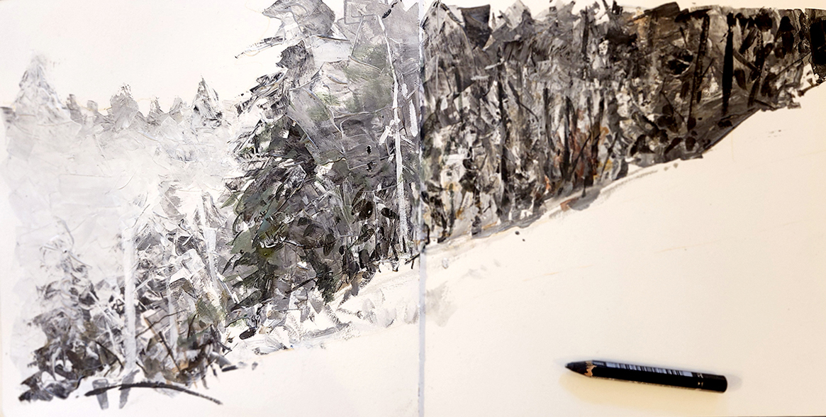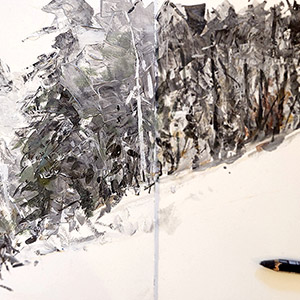 IMPORTANT : Période hivernale oblige, les stages sont en intérieur. L’idée n’est pas de faire « comme si » on était sur le vif. Mais de mettre à profit le calme et le confort d’une table pour aborder des sujets difficiles à enseigner in situ : les scènes d’orages, de pluie, de neige…, les techniques nécessitant un peu de matériel (carnet « abstractif », acrylique, mélanges encre/gouache…), les domaines où les références et les connaissances théoriques sont utiles à la transmission (le portrait), les thèmes pour lesquels le confort d’une salle permet de se poser tranquillement et travailler d’après photo avant de se lancer dans la rue (personnages, scènes de vie…), la liste n’est pas exhaustive et est ré-adaptée chaque année.