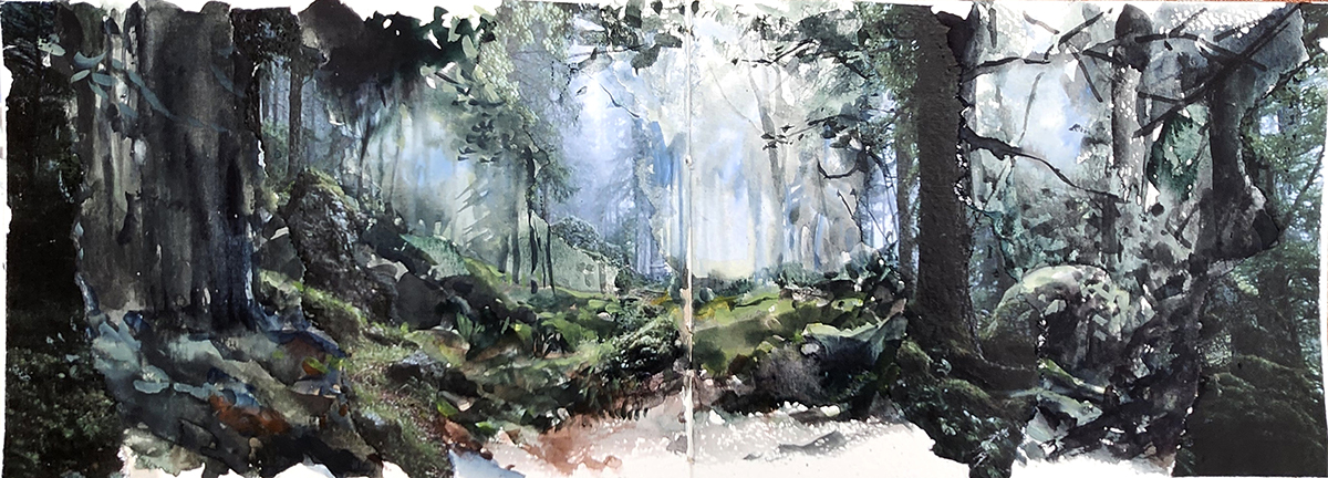 L’exposition « Forêt » présente le récit peint et dessiné d’une année d’immersion dans la forêt de la montagne Noire située dans le Parc Naturel du Haut Languedoc. Entre journal d’observation et documentaire, Christophe Pons-Capitaine réalise une exploration intimiste sur une année de bivouac, cinq jours par semaine en forêt. Une échappée buissonnière à la découverte de l’univers sylvestre, de sa biodiversité, de son histoire et ses légendes.